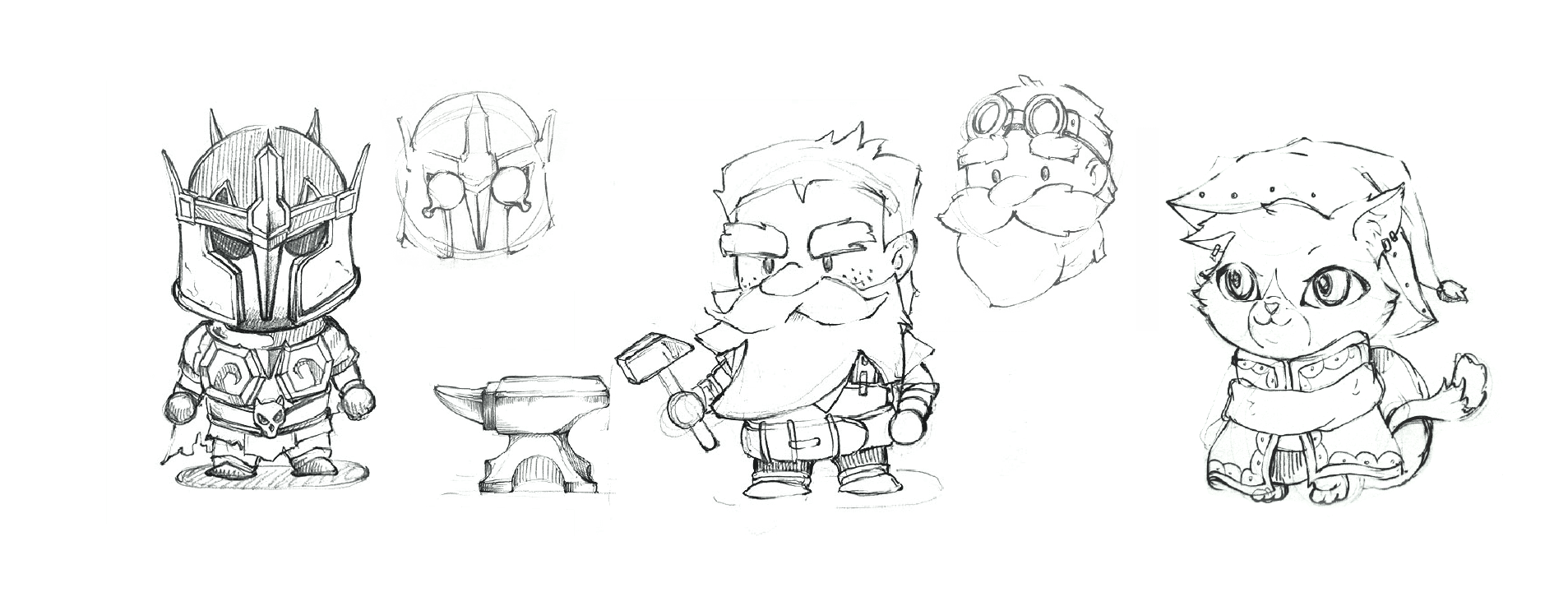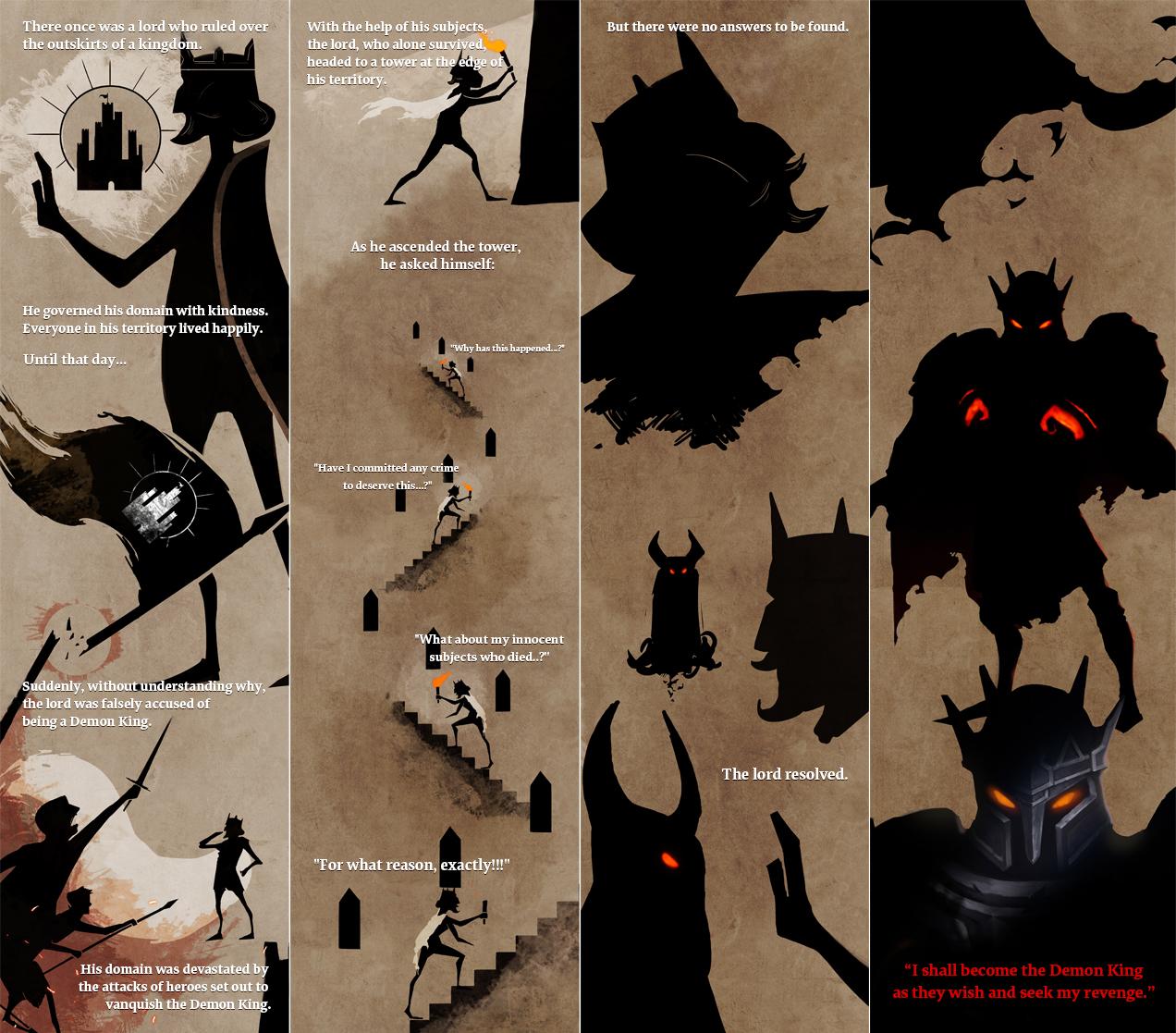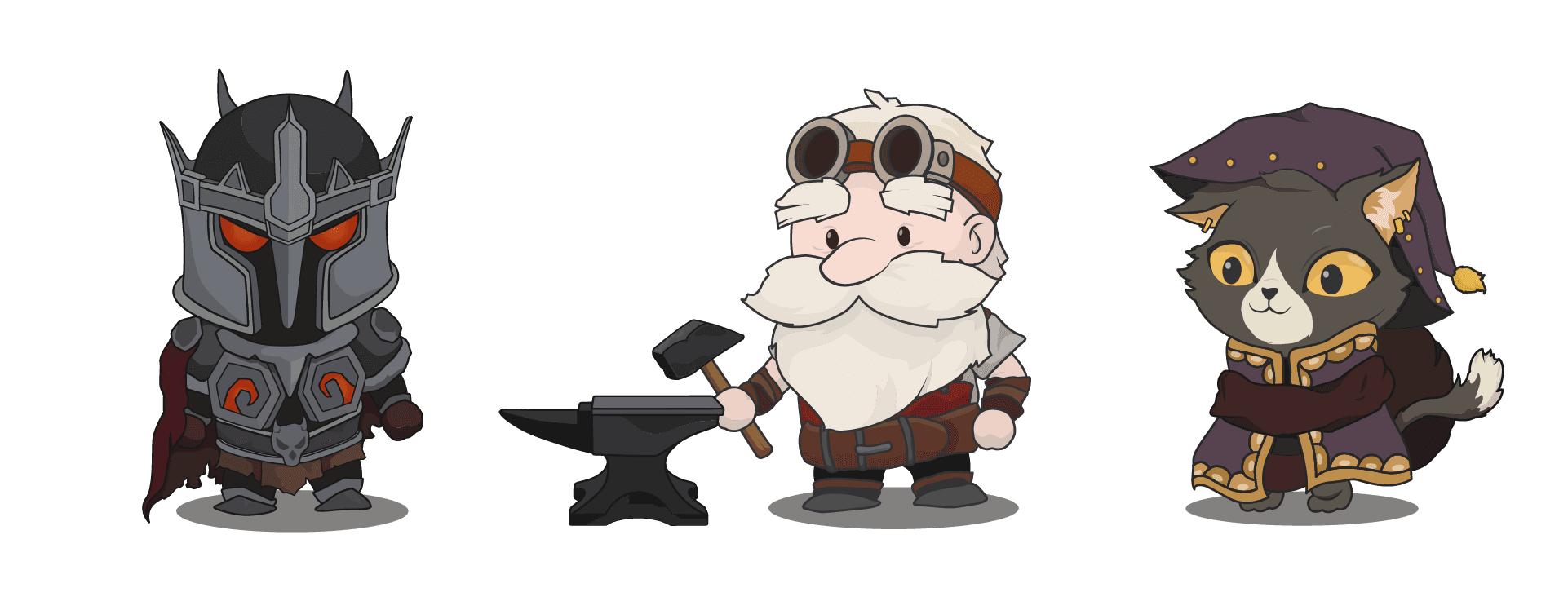 The main characters in the game consist of heroes with different concepts appearing in three chapters, and a blacksmith and a cat merchant who stand by the Demon King's side to assist him. Every hero has animations of 'walk, hurt, die, attack, and attack2.' Bosses in each chapter have about twice as many attack patterns and walking animations.