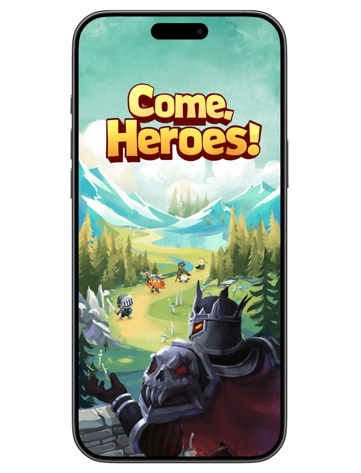 Come, Heroes! is a strategic defense mobile game where players defend their domain as a falsely accused lord mistaken for a Demon King. By reversing the traditional hero–villain dynamic, the game challenges players to strategically deploy traps against relentless invading heroes.