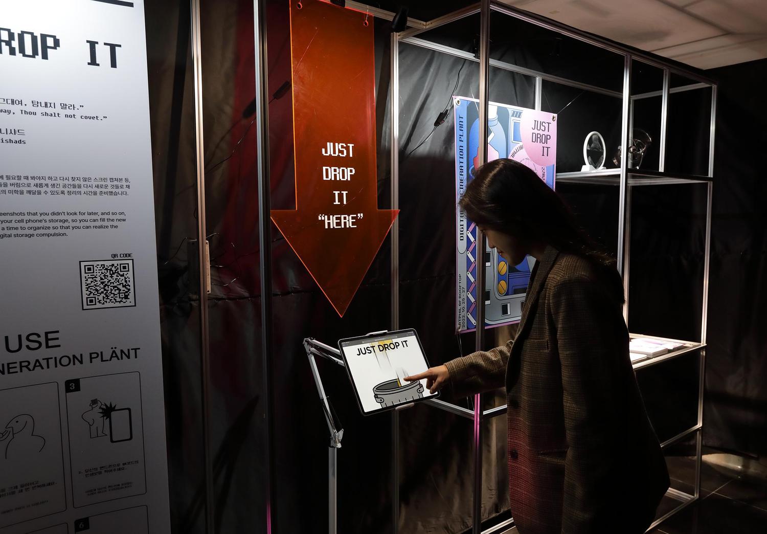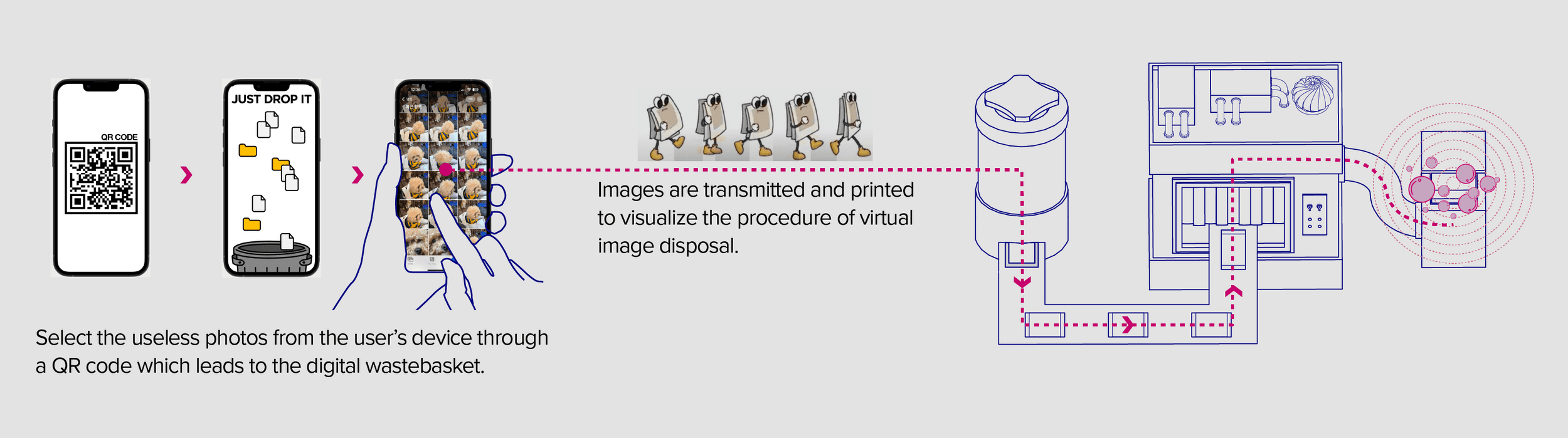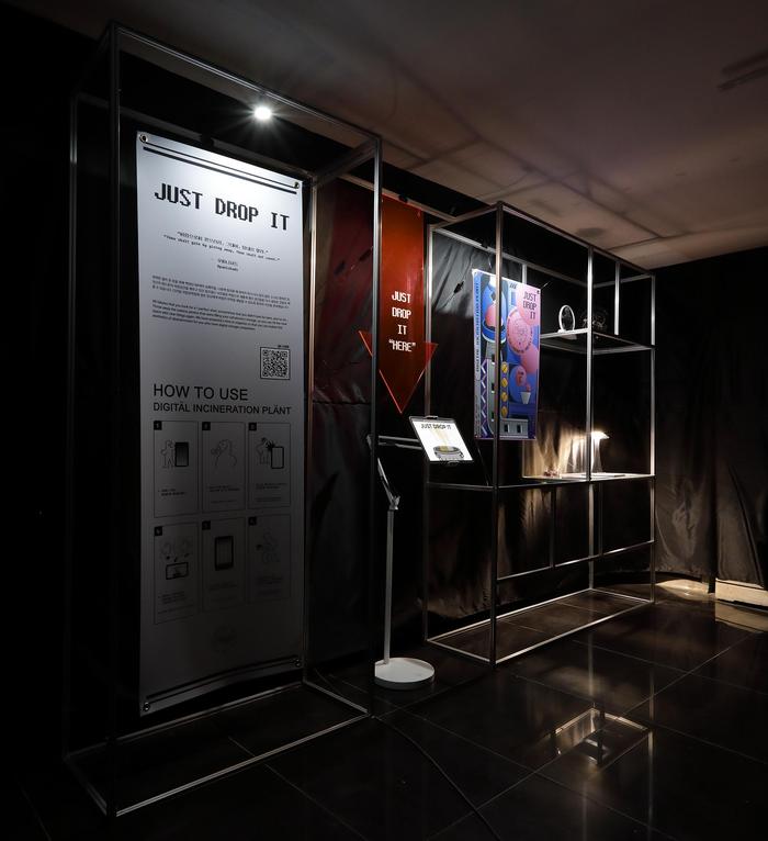 Just drop it is an interactive digital incineration installation that addresses digital hoarding by transforming data deletion into a tangible, participatory ritual.