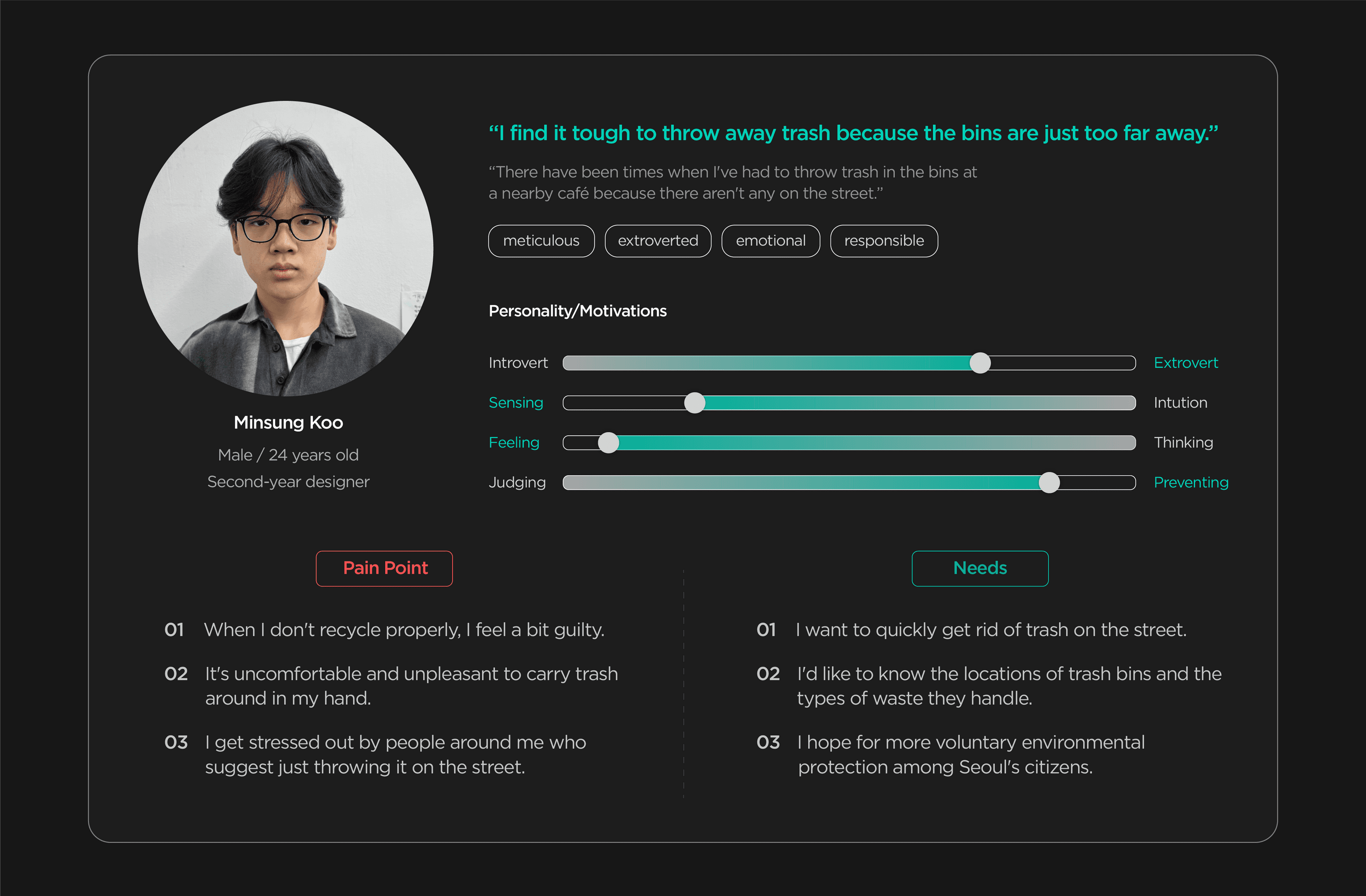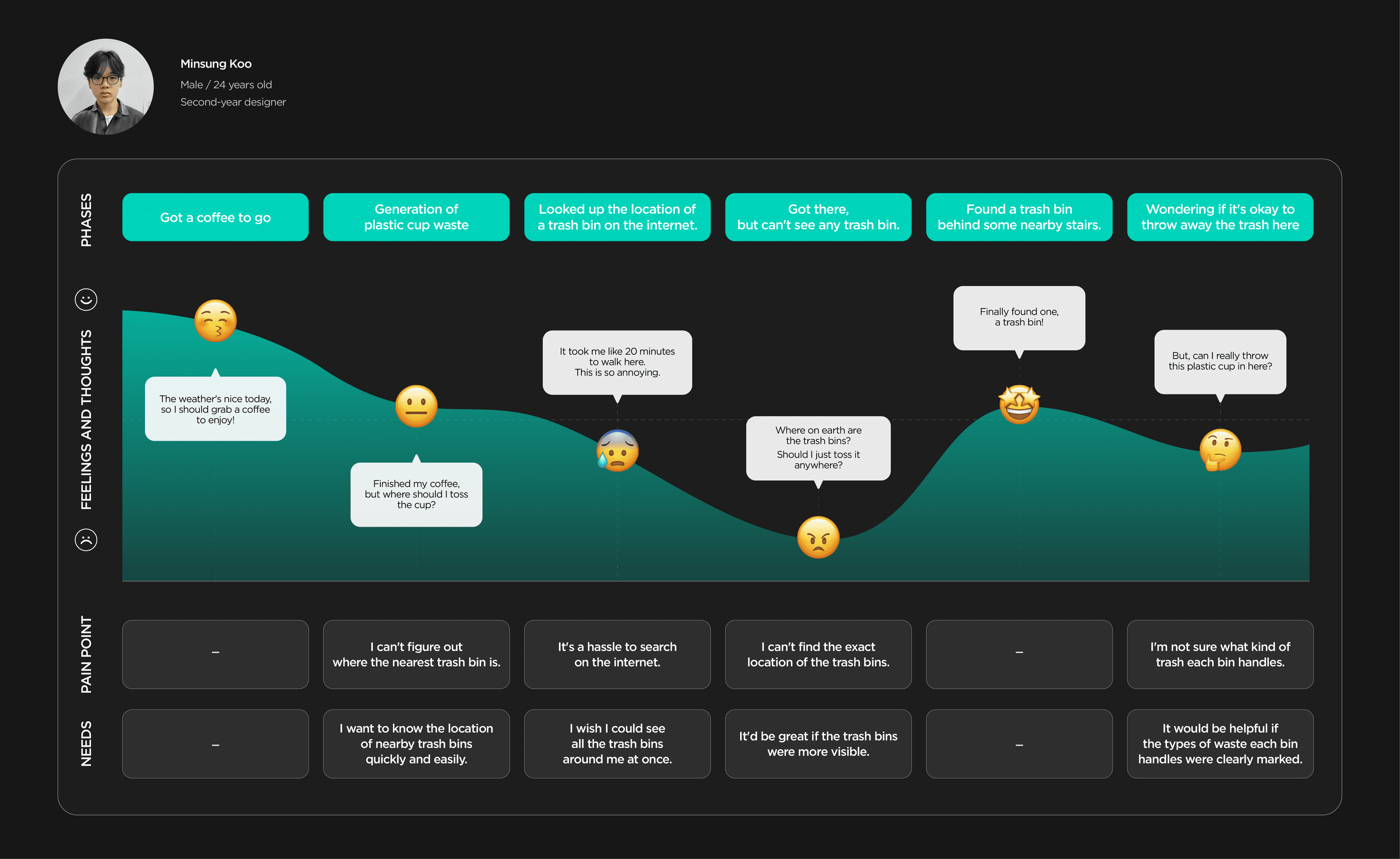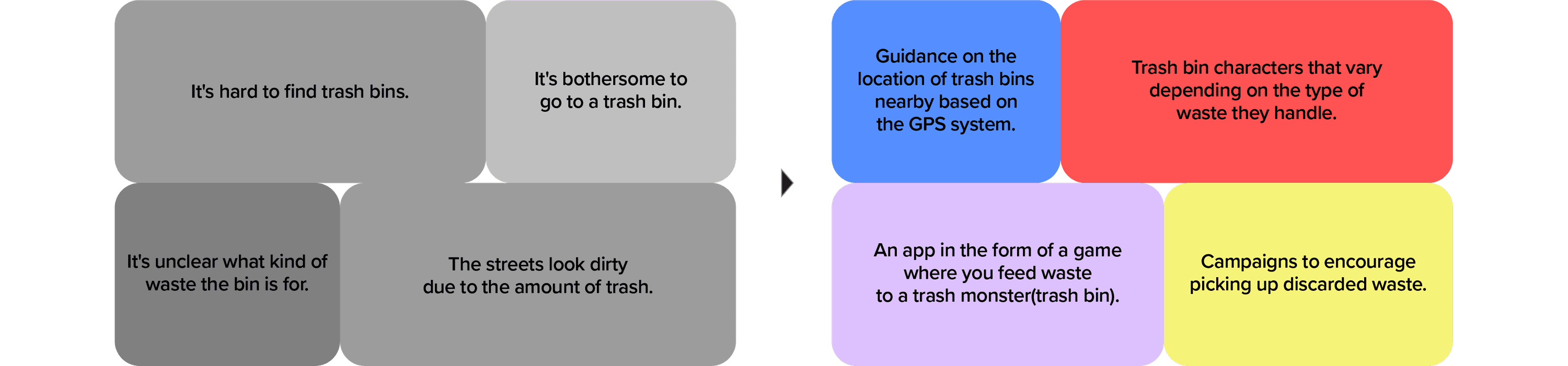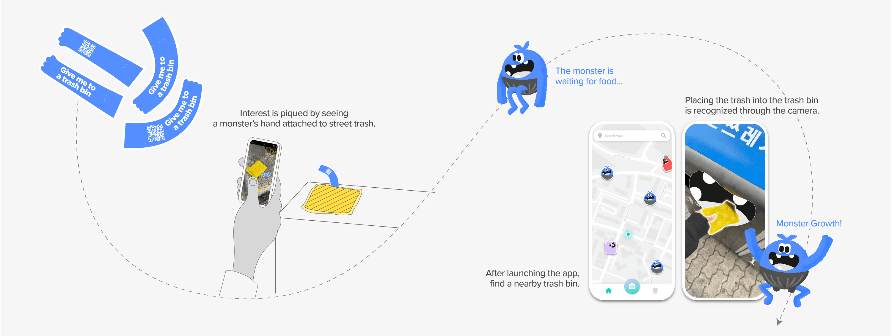 The lack of proper disposal points, combined with the inconvenience of carrying trash, often led people to dump their waste irresponsibly. Rather than just pointing out where bins are located, I wanted to motivate action by turning the act of waste disposal into something people would actively want to do.