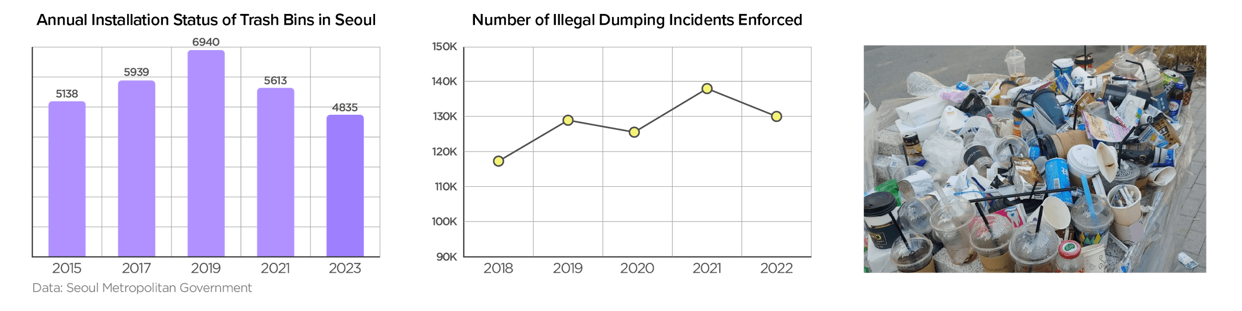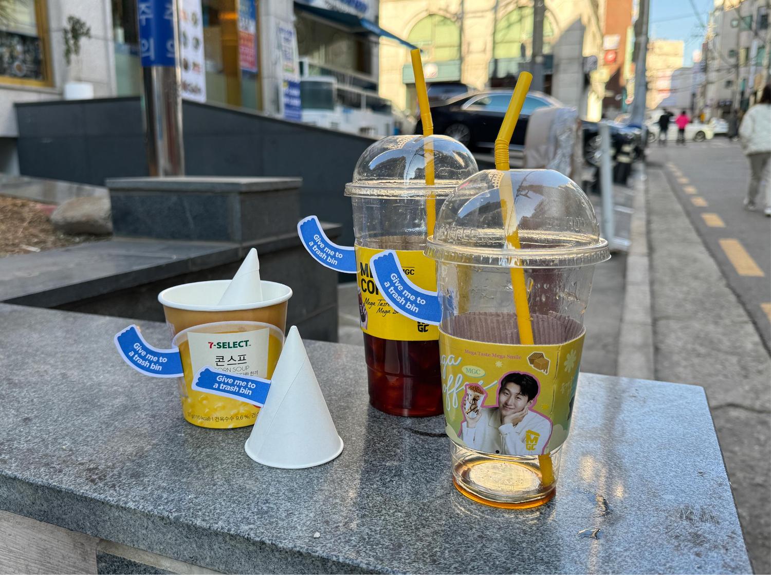 Walking through the streets of Seoul, I frequently noticed piles of litter accumulating in areas without visible trash bins.