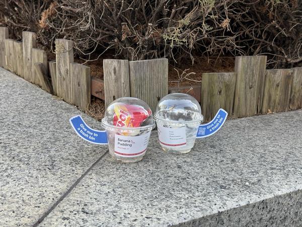 a temporary map of trash bins within the campus is displayed.